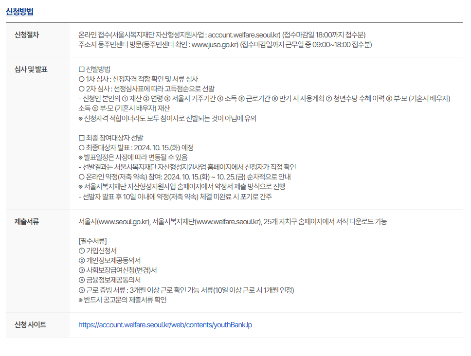 신청 방식: 서울시 자산형성지원사업 누리집(온라인, PC 전용)