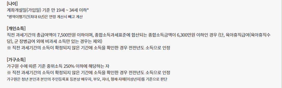- 중복 불가: 청년희망적금 등 유사상품 가입자는 제외